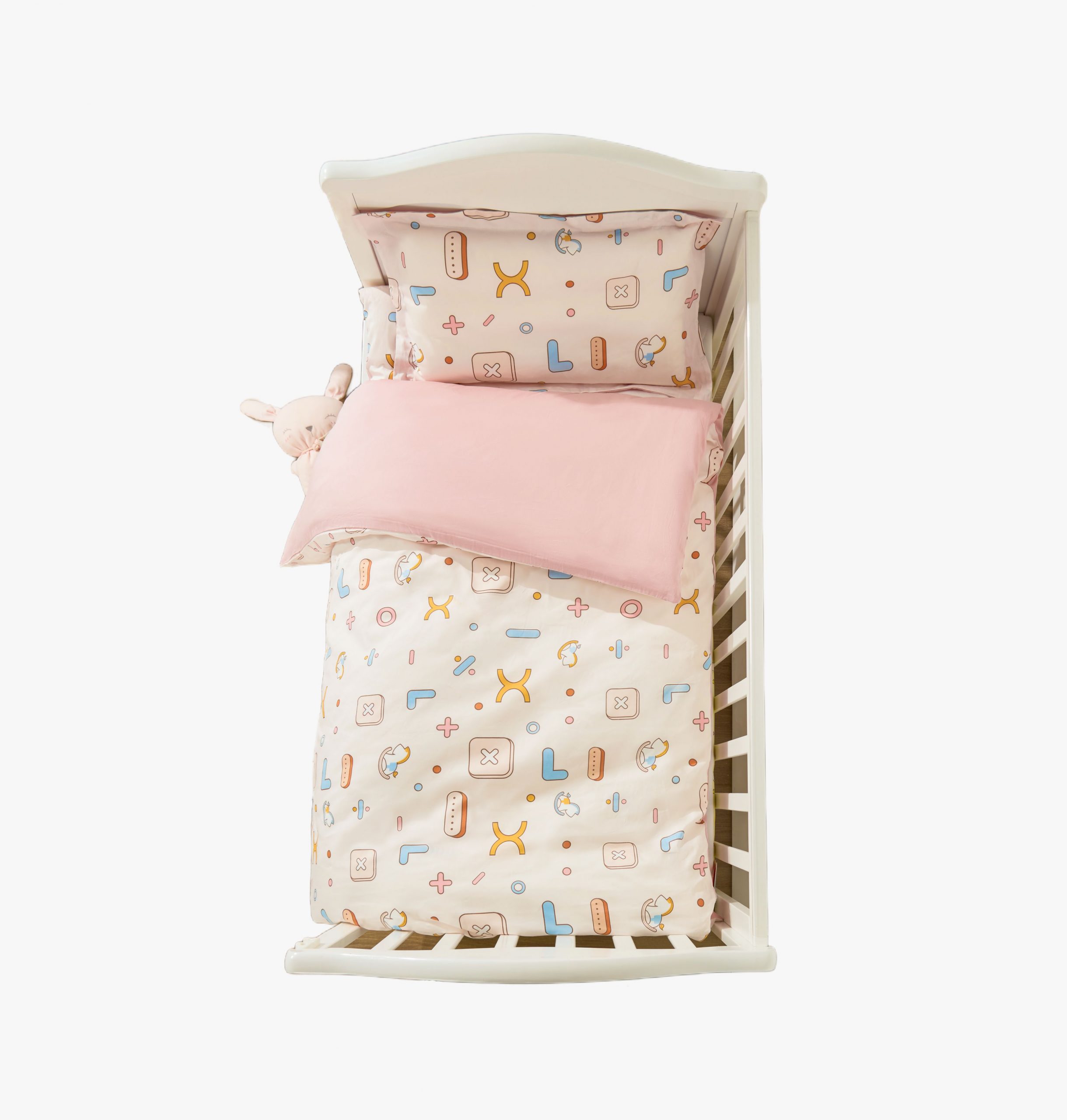 Including bed sheet, quilt cover, pillowcase and mattress cover; ramie fabric for breathability and heat dissipation, anti-pilling and durable, suitable for standard baby cribs.
